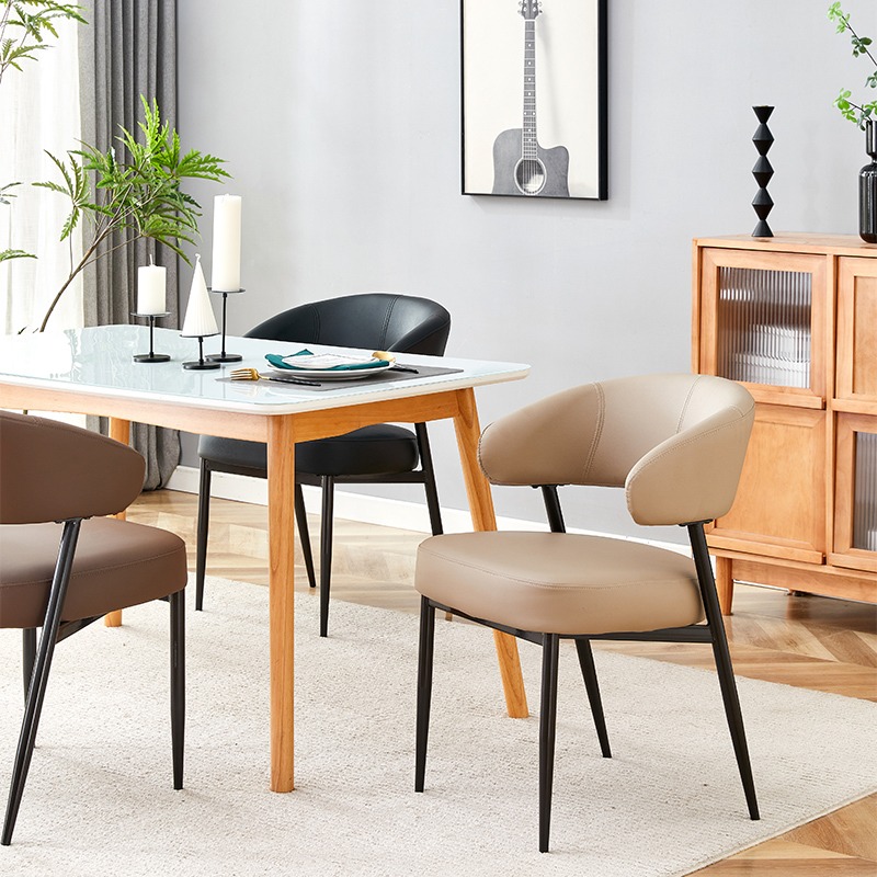 Cette chaise contemporaine combine parfaitement élégance, confort et solidité, grâce à son assise généreusement rembourrée et son dossier enveloppant qui soutient idéalement le dos. Son piètement en métal apporte stabilité et modernité, tandis que son revêtement en simili cuir ou velours offre une touche esthétique haut de gamme. Parfaite pour la salle à manger, les restaurants, les cafés ou un bureau stylé, elle apporte immédiatement une note chic et chaleureuse.