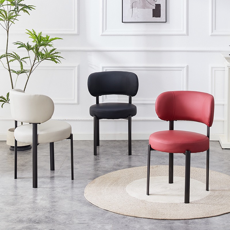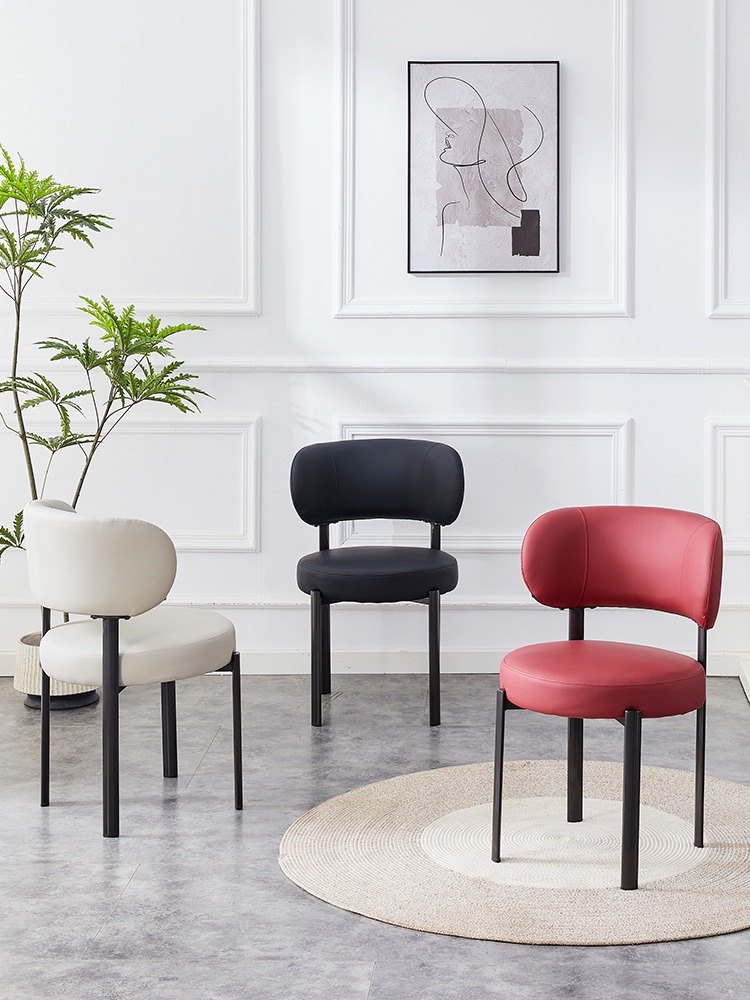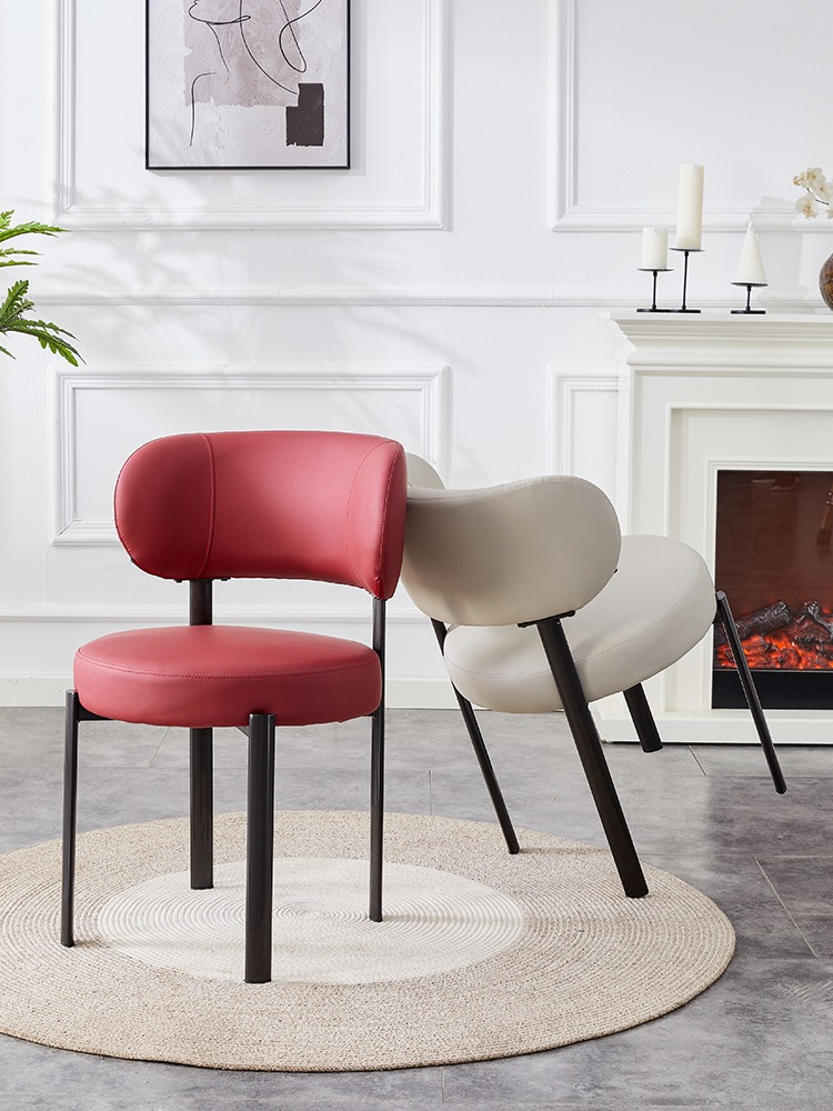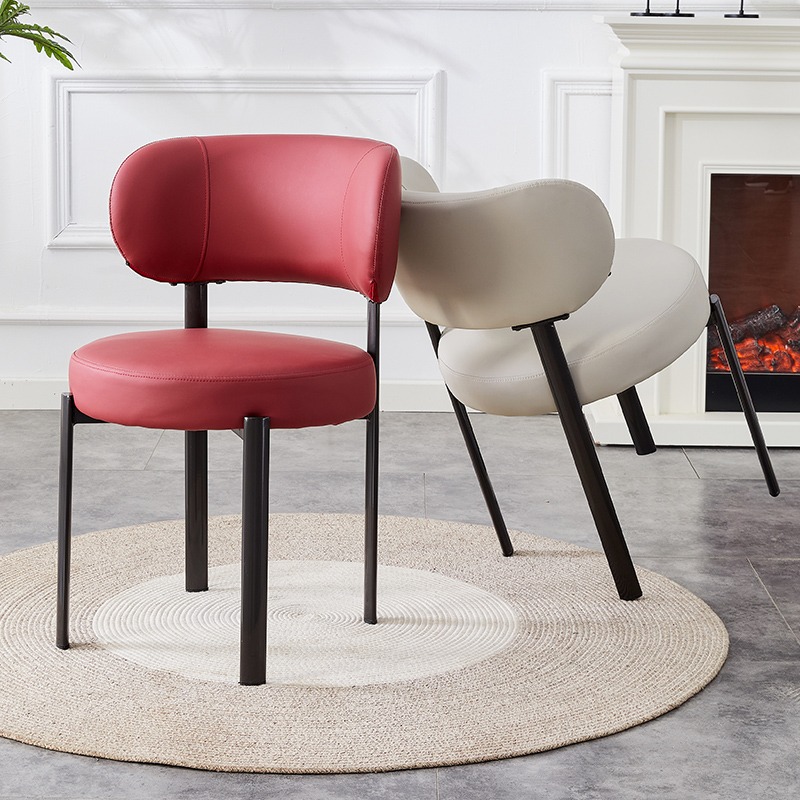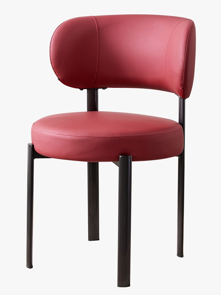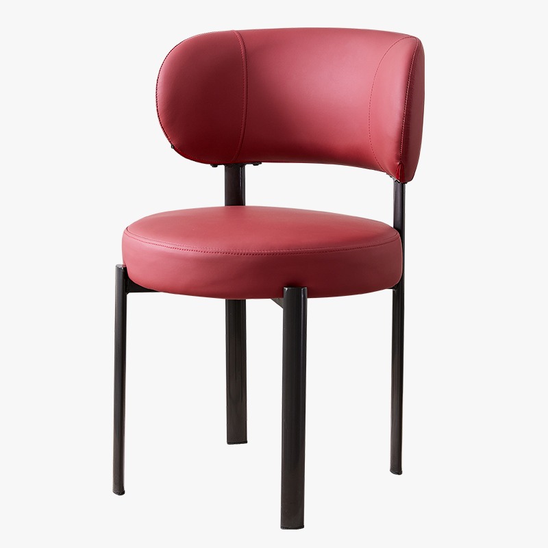 Cette chaise design en simili cuir rouge offre un mélange idéal de confort et d’élégance. Son siège rond rembourré et son dossier arrondi assurent une assise agréable tout en soutenant parfaitement le dos. Dotée de finitions soignées, elle repose sur des pieds métalliques robustes qui garantissent stabilité, durabilité et facilité d’entretien.